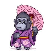 Instantly download and display this funny digital art of a gorilla in a purple kimono holding a traditional Japanese umbrella. Art with flair and wit.